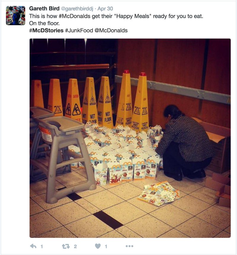Following the success of their #meetthefarmers campaign, McDonalds encouraged their fans to share their #McDStories in the hope of attracting heart-warming anecdotes and fond memories people have at McDonalds. Unfortunately what they got back was quite the opposite. Tweets exposed the side to McDonalds that the company did not want to spread like wildfire over social media.
